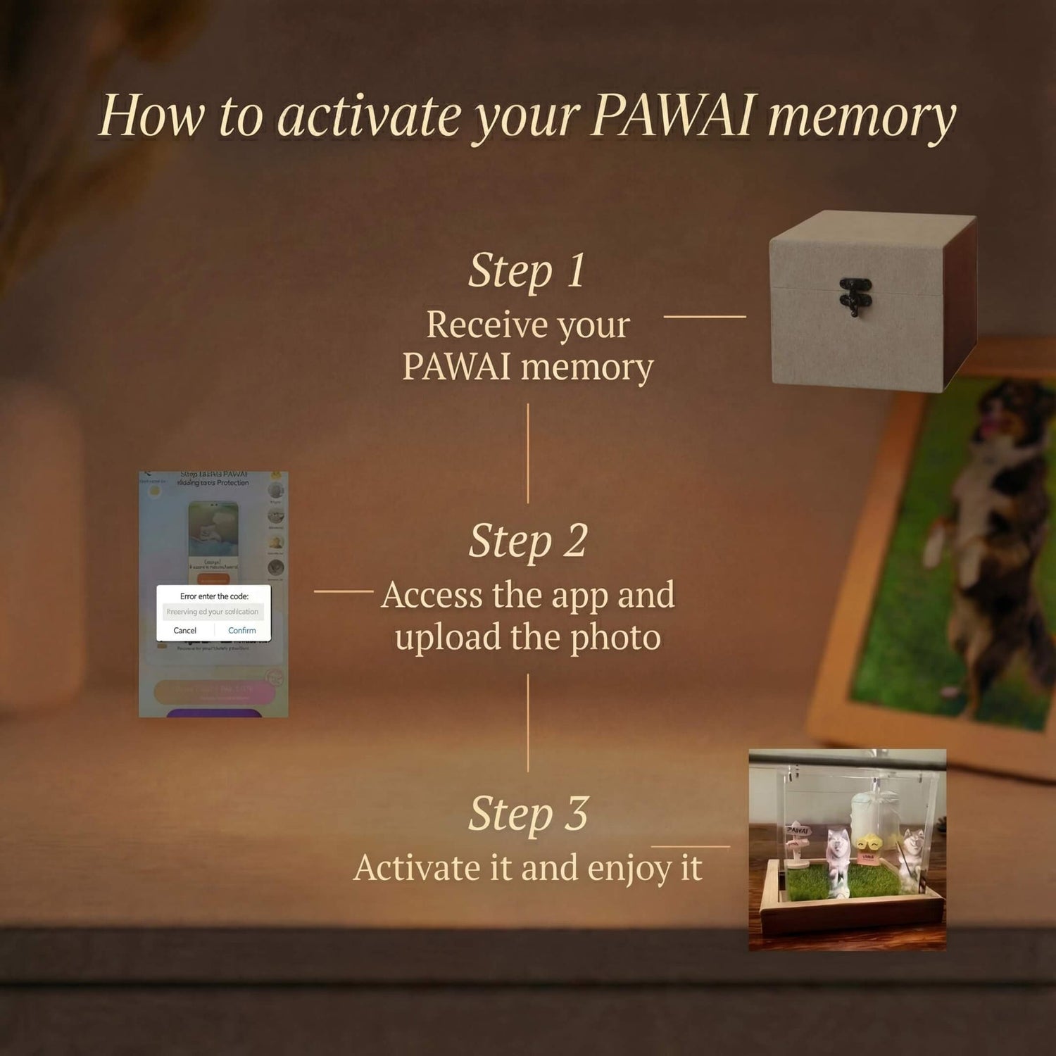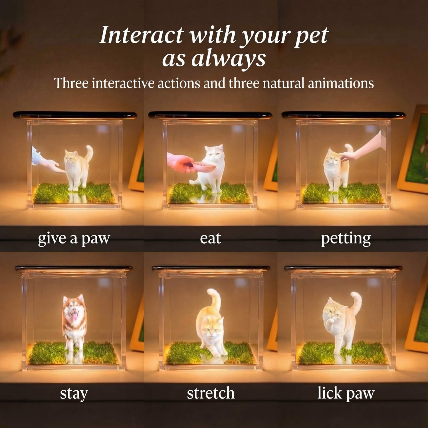 The hologram uses your mobile phone's screen to project a 3D image of your pet inside the box. You can interact with it using gestures or touches.